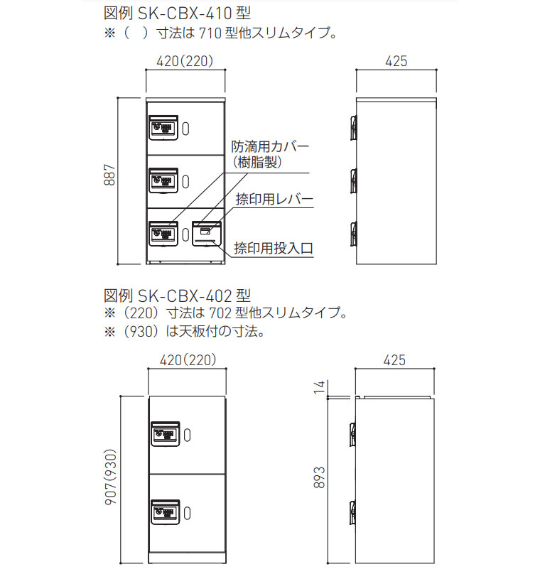 - 410、710型の捺印ボックスは通常の荷物用ボックスとして使用できます。